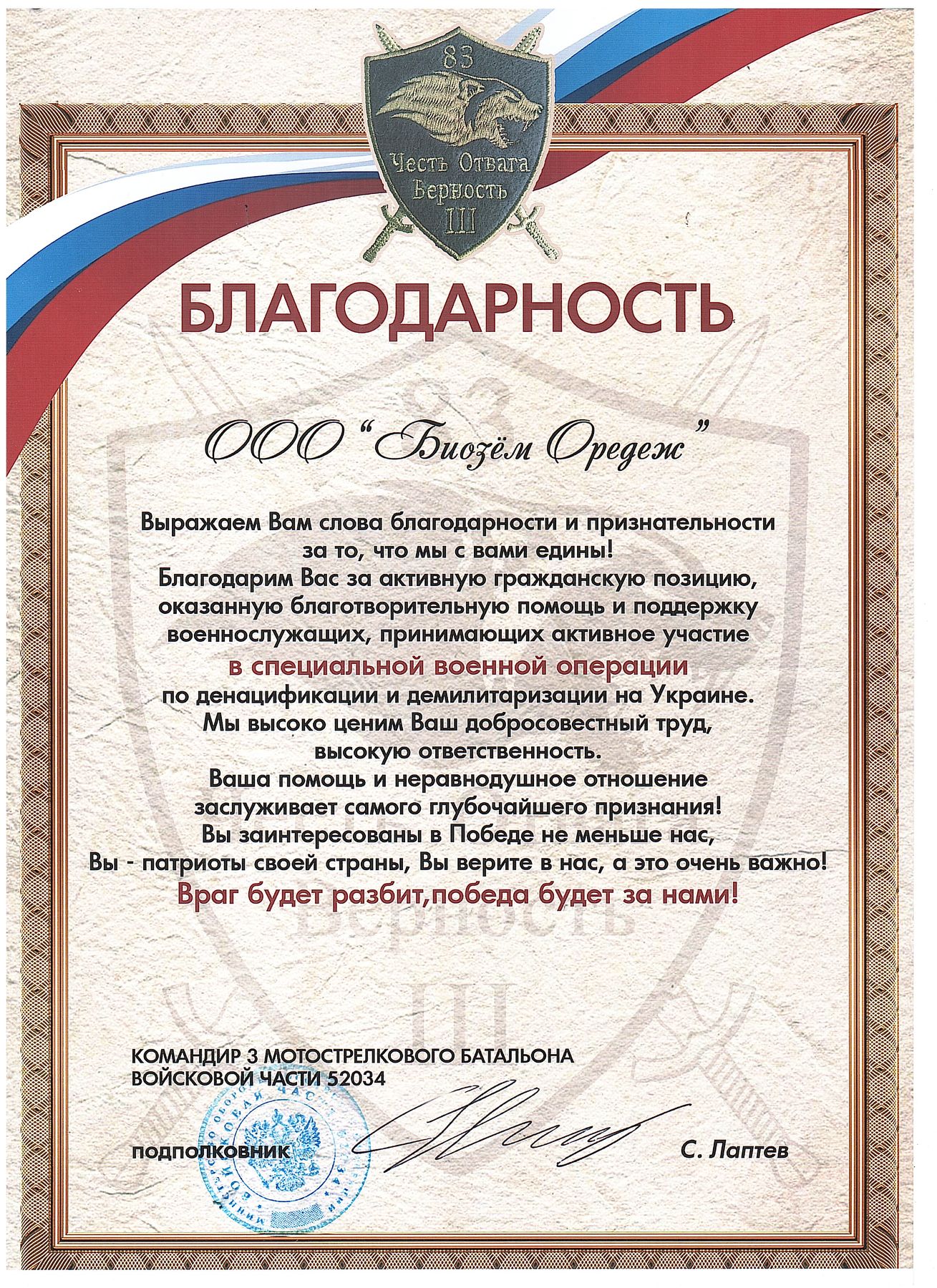 | 2012 | Фирма награждена «золотой медалью» на международной выставке «Агрорусь» за разработку и внедрение в производство органического биоудобрения «КМН» |